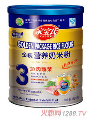 家寶氏0段益生元護腸配方奶米粉是汕頭市樂萬家食品工業(yè)有限公司旗下產(chǎn)品,專業(yè)的嬰幼輔食產(chǎn)品,選用優(yōu)質(zhì)大米為主原料,特別添加益生元、牛初乳、DHA+AA成分,可以很好的幫助bao--bao提升myil、視力和腦力,獲得了眾多媽媽的青睞。