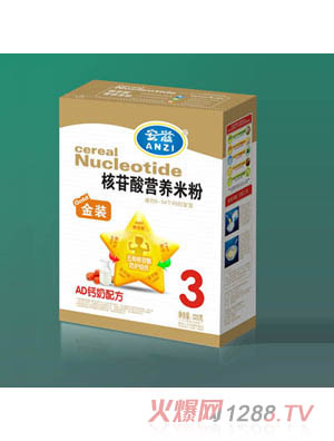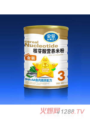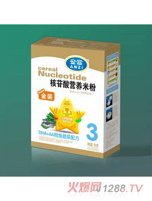 安滋優(yōu)倍護有機米鱈魚護腸配方米粉,是精選有機米、脫脂奶粉、優(yōu)質大豆分離蛋白粉、白砂糖、淮山粉、鱈魚粉、胡蘿卜粉、低聚果糖、低聚異麥芽糖、單細胞海藻二十二碳六烯酸(DHA)、花生四烯酸(AA)、;撬岬雀鞣N原料精制而成。同時強化成長所需的鐵、鋅、鈣及維生素。引進臺灣技術,經先進的設備碾磨,蒸煮,液化,干燥,碎片制成。由于經過蒸煮處理,不需再煮,涼熱開水均可沖調,bao--bao容易消化吸收,是6個月以上的優(yōu)良谷類補充食品。