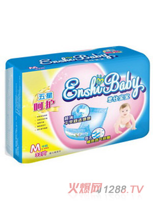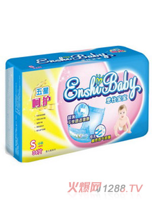 柔----質(zhì)地柔軟,嬰兒皮膚極其嬌嫩,稍微粗糙的質(zhì)地,就會(huì)使bao--bao受到摩擦傷害,劣質(zhì)材料加工的紙尿褲甚至?xí)裝ao--bao腿部摩得又紅又腫。恩仕bao--bao紙尿褲采用特級(jí)柔軟的親膚棉質(zhì),云朵一般柔軟,貼心呵護(hù)bao--bao嬌嫩肌膚。