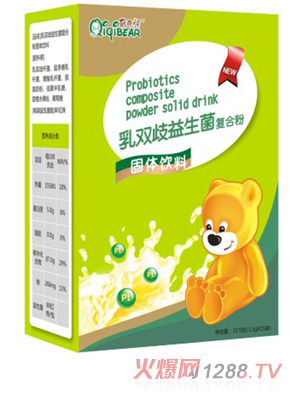 奇奇熊益生菌粉以嗜酸乳桿菌、雙歧桿菌、兩歧雙歧桿菌為主要原料,利用進口成產線在GMP凈化車間,嚴格按照IS09001質量標準進行生產的營養(yǎng)食品。