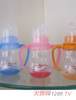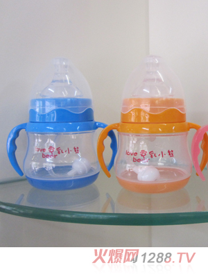 愛(ài)乳小熊150ml寬口感溫奶瓶瓶身采用不含雙酚A的食品級(jí)PP材料制造,無(wú)毒、環(huán)保、韌性高,不易裂。可煮沸消毒,內(nèi)壁平滑,易消洗;寬口徑瓶身,易于調(diào)奶及消洗。加上把柄,使用起來(lái)更方便。