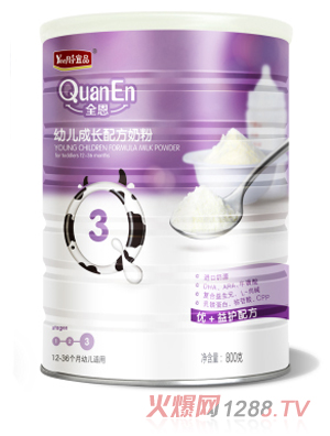 對bao--bao來說健康聰明成長是關(guān)鍵,時(shí)期是生長發(fā)育的黃金期,營養(yǎng)的有效的充足補(bǔ)充是必要,奶粉的選擇就應(yīng)該選擇最優(yōu)質(zhì)的產(chǎn)品!全恩奶粉秉承“只做自然運(yùn)輸工”的制造理念,選用進(jìn)口優(yōu)質(zhì)奶源,采用四重優(yōu)+益護(hù)配方,專為中國bao--bao打造一款天然、安全、營養(yǎng)均衡的奶粉。