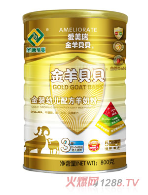 愛美瑞金羊貝貝5優(yōu)抵抗力、5好智商優(yōu)好配方配方羊奶粉,特別添加乳鐵蛋白、微藻DHA、ARA、5種核苷酸、低聚半乳糖GOS、低聚果糖FOS、膽堿、;撬帷-肉堿及鈣、鐵、鋅、葉黃素、維生素A、維生素B族、維生素C等營養(yǎng)因子。