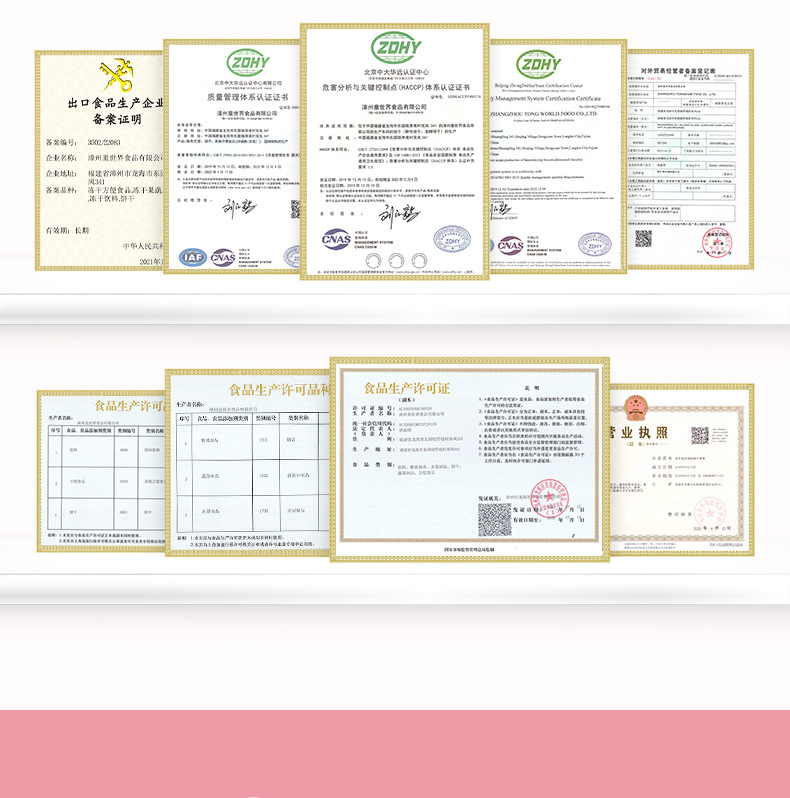 漳州童世界食品有限公司主營一站式代加工OEM業(yè)務,致力于健康兒童食品、功能性代餐食品、凍干燕窩的研發(fā)與生產(chǎn),公司占地面積12000平方米,始終秉承已科技為先導、以先進的現(xiàn)代化管理依托、已“顧客滿意第一”為宗旨的經(jīng)營方針、致力發(fā)展成為一家研發(fā)和制造健康、美味、營養(yǎng)的食品企業(yè)。 公司的誠信、實力和產(chǎn)品質量獲得業(yè)界的認可。歡迎各界朋友蒞臨參觀、指導和業(yè)務洽談。