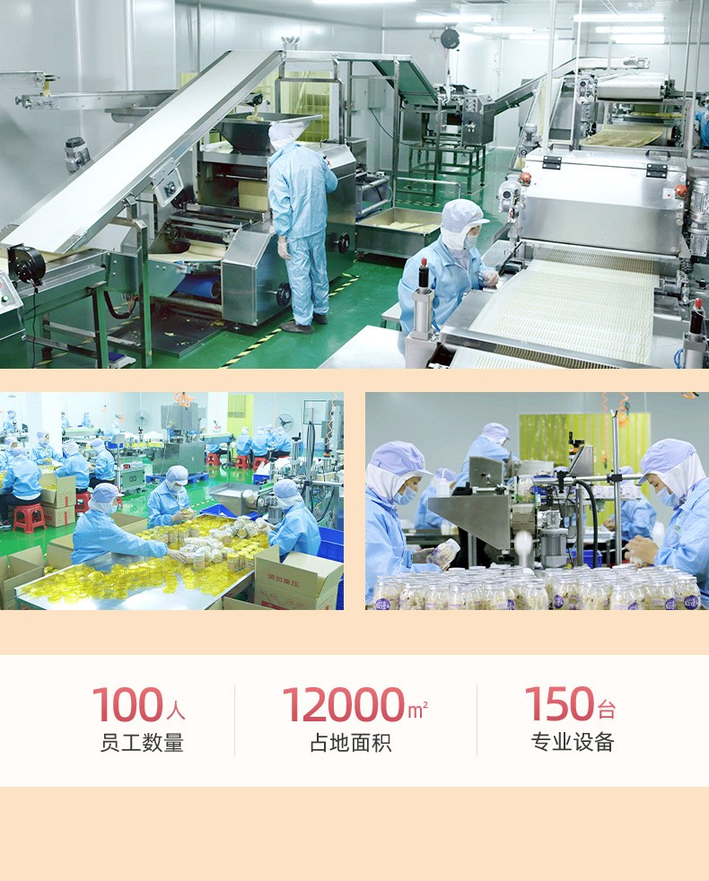 漳州童世界食品有限公司主營一站式代加工OEM業(yè)務(wù),致力于健康兒童食品、功能性代餐食品、凍干燕窩的研發(fā)與生產(chǎn),公司占地面積12000平方米,始終秉承已科技為先導、以先進的現(xiàn)代化管理依托、已“顧客滿意第一”為宗旨的經(jīng)營方針、致力發(fā)展成為一家研發(fā)和制造健康、美味、營養(yǎng)的食品企業(yè)。 公司的誠信、實力和產(chǎn)品質(zhì)量獲得業(yè)界的認可。歡迎各界朋友蒞臨參觀、指導和業(yè)務(wù)洽談。