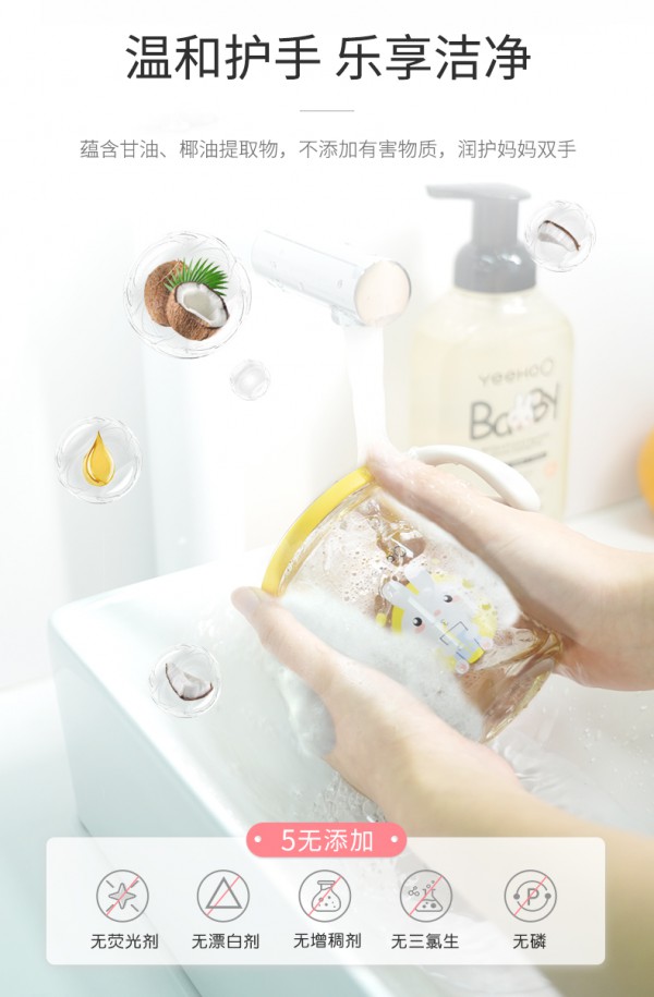 英氏嬰兒奶瓶果蔬酵素清潔泡沫蘊含甘油、椰油等天然植物提取物,不添加熒光劑、增白劑、增稠劑、三氯生、磷等有害物質(zhì),溫和清洗更護手,悉心潤護媽媽雙手,讓媽媽樂享潔凈。