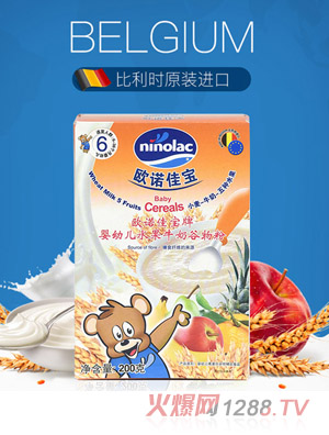 歐諾佳寶米粉,選材在比利時,生產(chǎn)也在比利時,由上海添慶網(wǎng)絡(luò)科技股份有限公司引入國內(nèi)市場。根據(jù)東方人群飲食特征來設(shè)計配方,雜糧谷物、水果牛奶谷物、蔬菜、混合谷物和原味大米粉,一整個谷物果蔬大集合,滿足輔食添加期要求的膳食多樣化。這些谷物果蔬均為食品級原料,無農(nóng)藥、無污染、非轉(zhuǎn)基因,生產(chǎn)過程無防腐劑、增稠劑、色素及人工香精添加,不含糖。