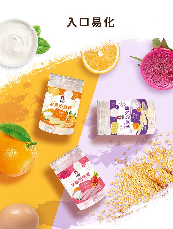 果蔬妃水果奶溶棒系列,有火龍果味、酸奶味、香橙味,共三種口味,甄選優(yōu)質(zhì)食材,融入鮮果汁,營養(yǎng)豐富,美味十足。入口不甜膩,好吃易消化。