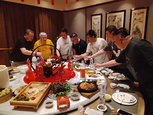 菲瑞營銷中心總經(jīng)理及銷售總監(jiān)陪同貴客,在當(dāng)天的“歡迎晚宴”和遠(yuǎn)道而來的“家人們”一起談未來、講生活,大家如親人般相談甚歡。