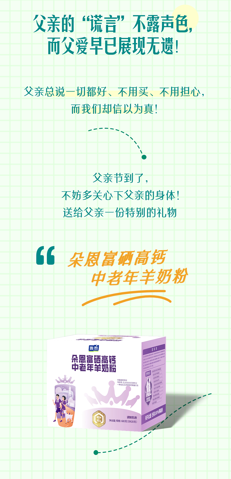 編輯:春燕 標(biāo)簽:朵恩中老年羊奶粉 朵恩父親節(jié)活動(dòng)