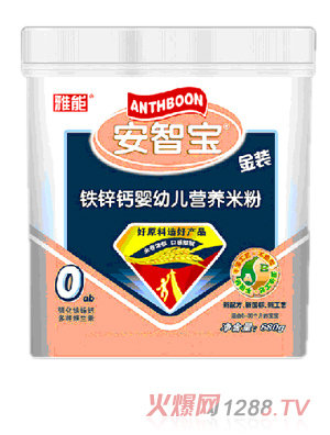 雅能安智寶,央視上榜品牌,雅能安智寶嬰兒奶粉是適于幼兒食用的配方奶粉,它含有母乳中含有的活性免疫球蛋白、DHA、ARA、核苷酸、;撬帷㈣F質(zhì)等重要物質(zhì),有助于提高免疫抗病能力,幫助快速成長,同時還有助于大腦,視網(wǎng)膜及機體健康發(fā)育。
